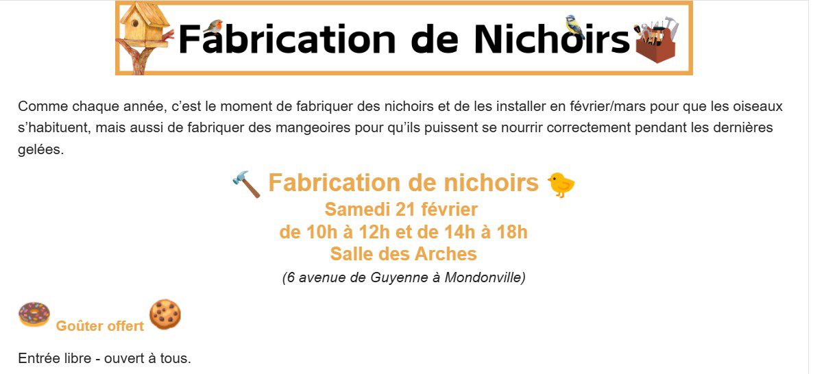 - Pour Les nichoirs, des planches de bois d’environ 18 mm d’épaisseur et de longueur d’environ 40cm, largeur 20cm. Des pitons à vis bois.